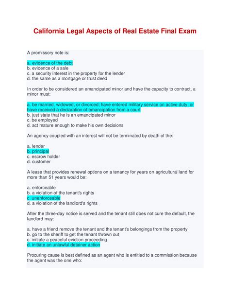 Online PDF CALIFORNIA REAL ESTATE LAW FINAL EXAM ANSWERS Kobo Gutenberg